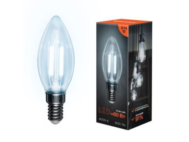 Филаментная лампа имеет форму, имитирующую пламя свечи, за счет чего и получила свое название. Обеспечивает качественное основное и дизайнерское освещение различных помещений. За счет распространения света во всех направлениях имеет широкий угол освещения и может быть установлена любым способом. Стильный дизайн делает лампу отличным дополнением любого интерьера. Подходит как для отрытых, так и закрытых светильников. Прозрачная колба пропускает больше света и обеспечивает высокую яркость. Обладает многими преимуществами: низкое энергопотребление, хорошее отведение тепла, долговечность, упрощенная утилизация и высокое качество. Мощность лампы с цоколем Е14 составляет 7,5Вт.