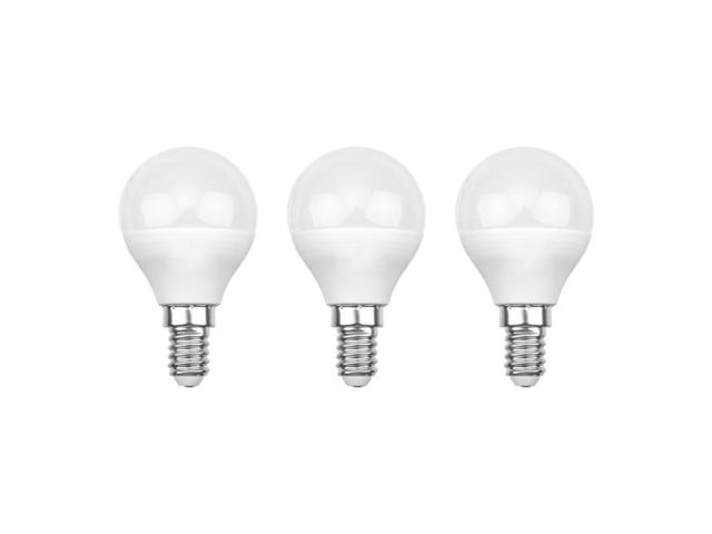 604-033-3 Лампа светодиодная REXANT Шарик (GL) 7.5 Вт E14 713 Лм 6500 K холодный свет (3 шт./уп.)