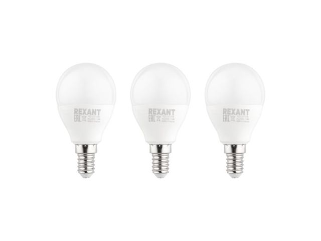 604-209-3 Лампа светодиодная REXANT Шарик (GL) 11.5 Вт E14 1093 Лм 6500 K холодный свет (3 шт./уп.)