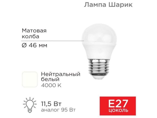 Светодиодная лампа с цоколем Е27 мощностью 11,5Вт выполнена в форме шара. Лампа с такой колбой не раздражает глаз и излучает нейтральный свет (4000K) без вредного мерцания.Имеет широкое применение, так как ее можно установить в любой осветительный прибор: люстру, светильник, декоративную светотехнику и т.д. Срок службы составляет 30 000 часов.Отличительные преимущества: гарантированный световой поток без потери мощности, высокая цветопередача, электромагнитная совместимость, низкая пульсация.Также использование такой лампы позволяет снизить расходы на электроэнергию.