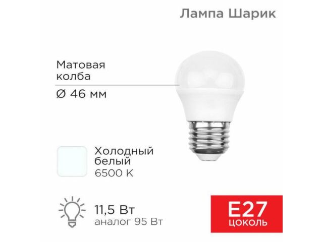 Светодиодная лампа с цоколем Е27 мощностью 11,5Вт выполнена в форме шара. Лампа с такой колбой не раздражает глаз и излучает холодный свет (6500K) без вредного мерцания.Имеет широкое применение, так как ее можно установить в любой осветительный прибор: люстру, светильник, декоративную светотехнику и т.д. Срок службы составляет 30 000 часов.Отличительные преимущества: гарантированный световой поток без потери мощности, высокая цветопередача, электромагнитная совместимость, низкая пульсация.Также использование такой лампы позволяет снизить расходы на электроэнергию.