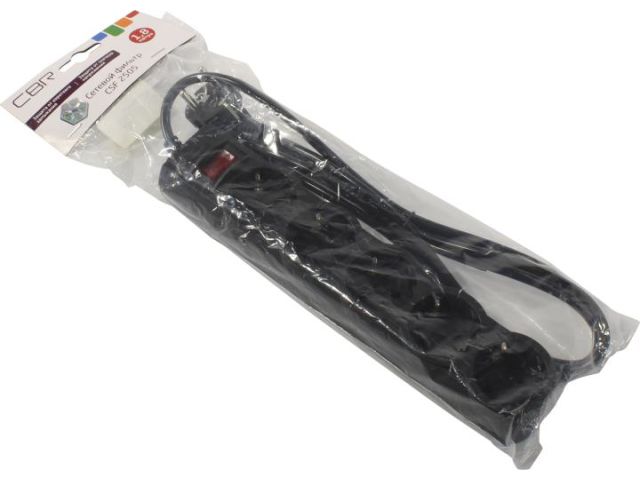 Сетевой фильтр CBR CSF 2505-1.8 Black PC  1.8м (5 розеток)