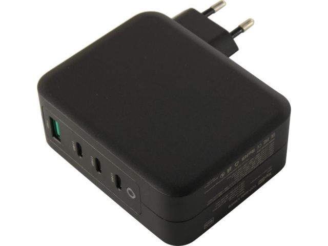 Зарядное устройство с тремя портами USB Type C, одним USB Type A суммарной мощностью 130 Вт и поддержкой USB Power Delivery мощностью до 100 Вт, а также QC3.0, QC 4.0 и PPS PD. Благодаря применению GaN (нитрид галлия) удалось сделать устройство компактным и эффективным.