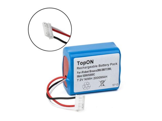 TopON TOP-IRBT380 для IRobot Braava 380, 380T, 390T Series. 7.2V 2000mAh Ni-MH. PN: GPRHC202N026.