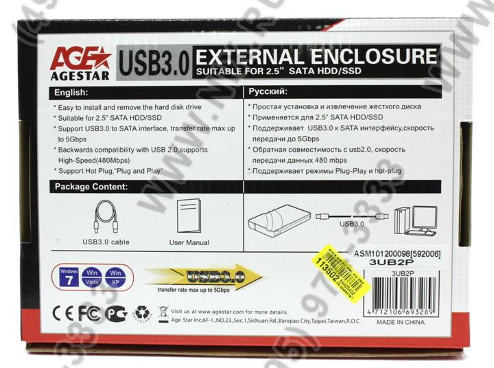 AgeStar 3UB2P (Внешний бокс для 2.5 SATA HDD, USB3.0)