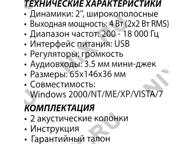 Тип оборудованияКомпьютерные колонки 2.0
