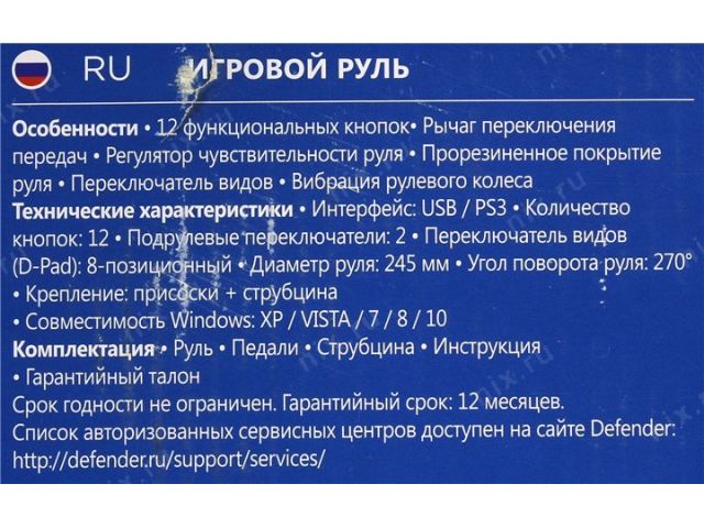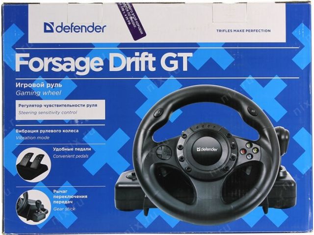 Руль Defender Forsage Drift(GT)(Vibr,руль.,педали,рычаг перекл.скор.,4поз..перекл.,12кн.,USB,PS2/PS3) 64370