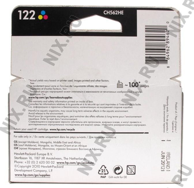 Картридж HP CH562HE/K (№122) Трехцветный для HP DJ 1000/1050A/2000/2050A/2054A/3000/3050A/3052A/3054A
