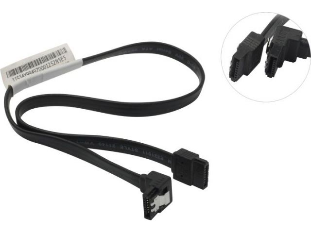 Кабель Serial ATA длиной 50 см с Г-образным коннектором. Использование такого кабеля облегчает установку HDD в корпуса с поперечным расположением корзины.