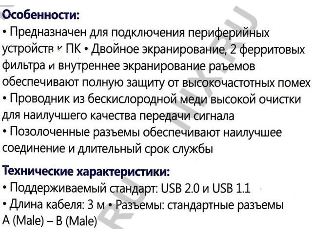 Defender 87431 Кабель USB 2.0 A-- B 3м 2 фильтра