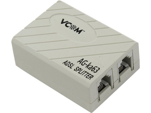 • VCOM AG-ka63/HL-2003/VTE7703/VAD7703 ADSL Splitter (AnnexA, вход 1xRJ-12, выход 2xRJ-12)