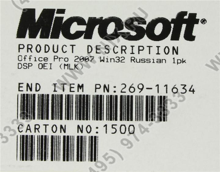 | Ключ активации Microsoft Office 2007 Профессиональный OEM ( ) |