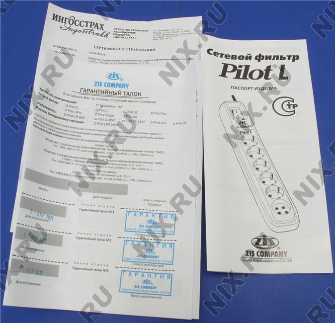 Сетевой фильтр ZIS Pilot-L-6  1.8м (6 розеток) 071