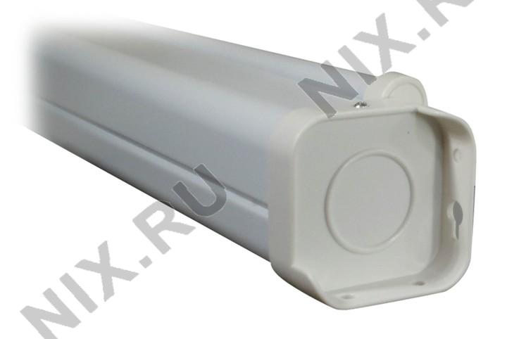 | Прочее | Устойчивость к огню. Возможность мыть. Устойчивость к плесени. Конструкция классического четырехугольного корпуса обеспечивает долговечную и плавную работу подпружиненного вала. Пружинный механизм позволяет легко разворачивать экран и фиксировать полотно на любой высоте. Черная кайма шириной 4 см по периметру. |