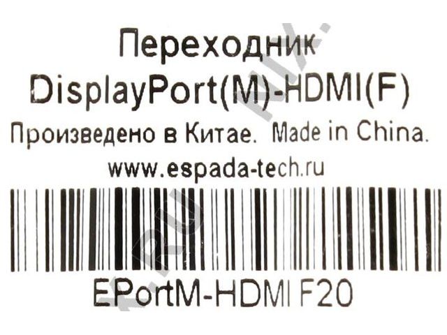 • Espada EPortM-HDMI F20  Кабель-адаптер DisplayPort - HDMI