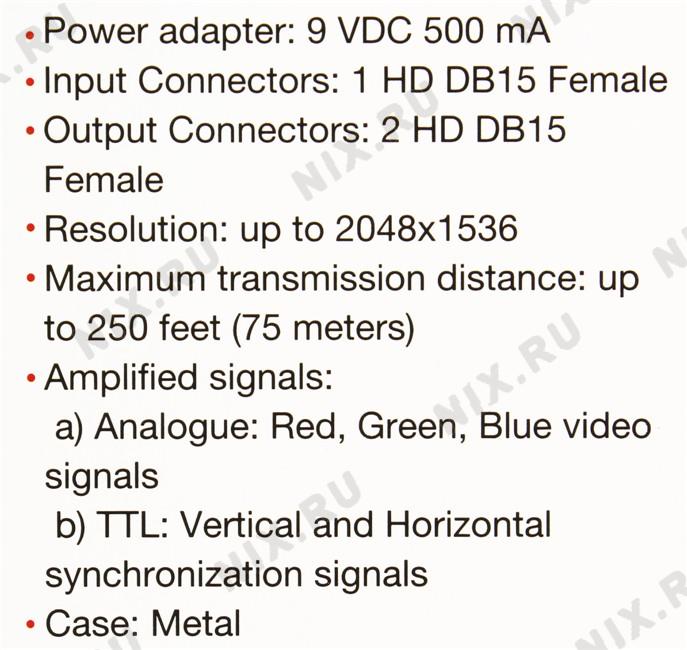 Тип оборудованияРазветвитель VGA (Video Splitter)