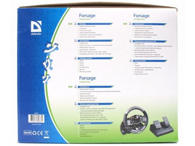 Руль Defender Forsage (Vibration, рулевое колесо, педали, рычаг КПП, 8поз.перекл.,12кн., USB) 64367
