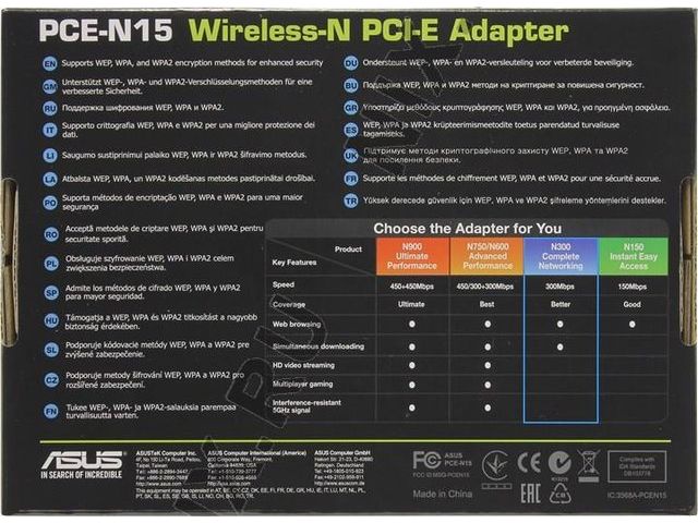 ASUS PCE-N15 Wireless N PCI-E Adapter (802.11n, PCI-Ex1, 300Mbps)